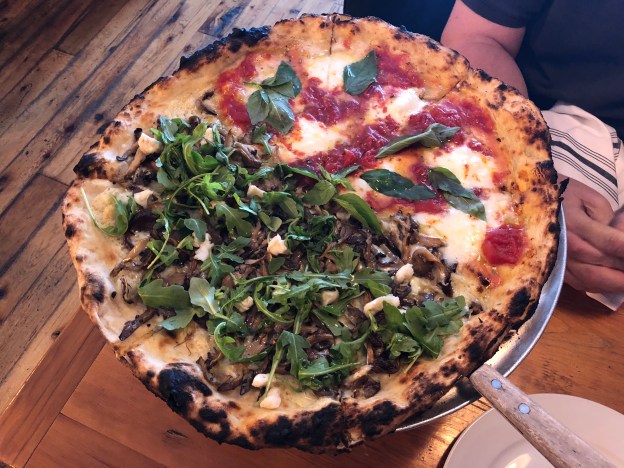 The mushrooms appeared to be Shiitakes with long stems and were very chewy. In my experience, the stems on shiitake mushrooms are typically discarded. For my taste there were too many arugula leaves on it. The crust was extra thin and rustic looking. The Margarita was traditional with delicious red sauce, fresh mozzarella and the right amount of basil leaves. I was surprised that the leaves were basil since they were serrated, however as soon as I tasted one I knew it was indeed a basil leaf.
