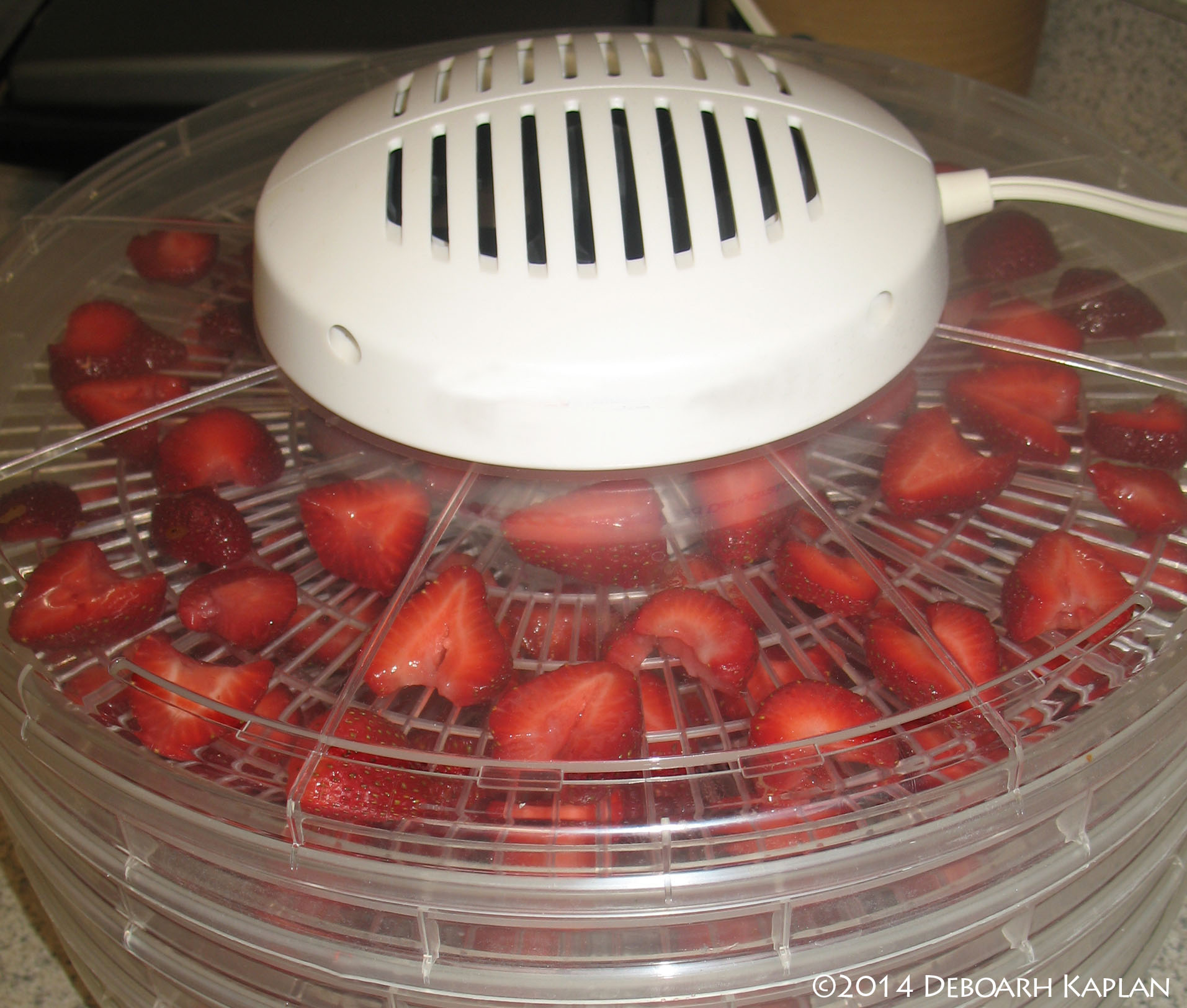 - Place strawberry pieces on racks of dehydrator.