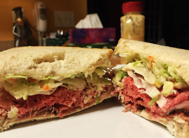- To prevent a soggy sandwich from occurring, add roast beef to slice one.