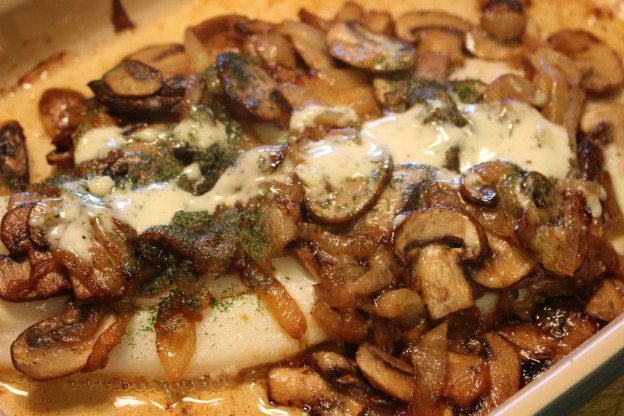 - Cover fish with mushroom mixture.