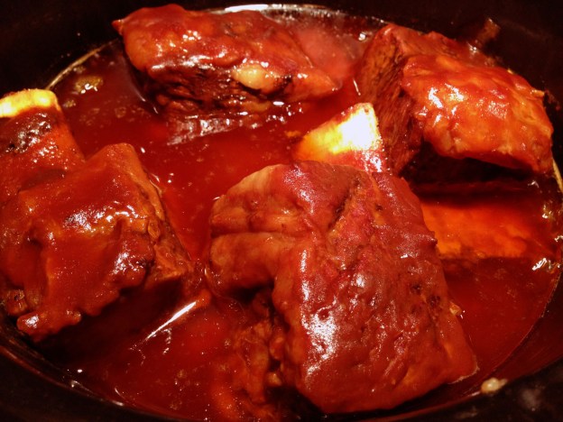 - Brown short ribs in olive oil in a skillet on medium high heat.