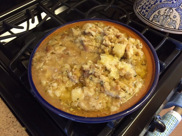 My take on a tagine is it’s a fast slow cooker. The chicken is tender and succulent with wonderful flavor. Super easy to prepare and serves a family of four. DH and I get two meals out of it. The photo shows some chunk pieces of pineapple, but I think the crushed works better. Produces a sweet and savory dish. Before I started hanging around with food groupies, I never knew what the difference was between dressing and stuffing. I just figured it was the same meaning but a different terminology used in different parts of the USA. However, I soon found out that stuffing is inside the poultry, fish or meat where as dressing is not.